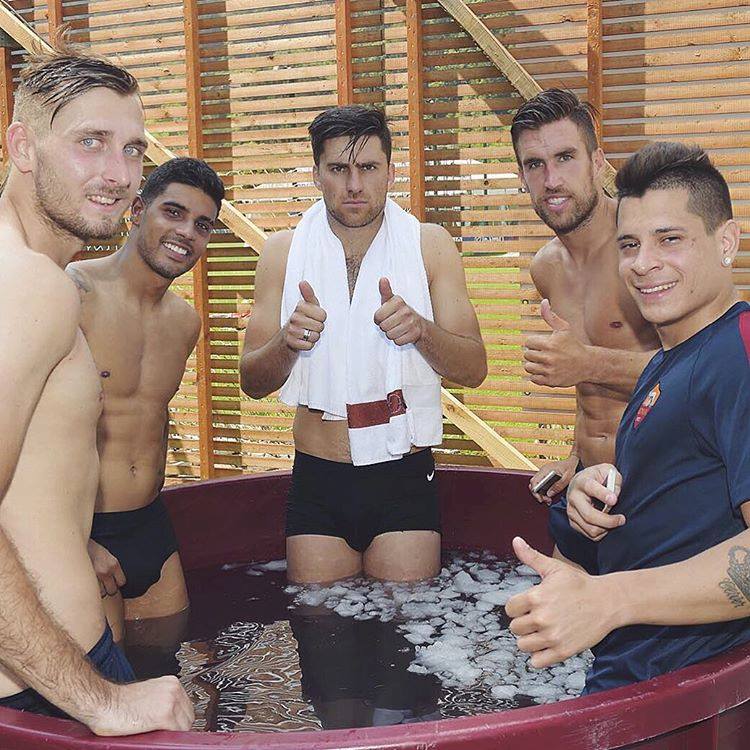 AS ROMA PLAYERS IN ICE BATH
